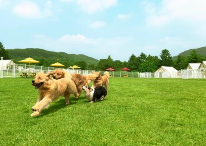 용인 골드펫리조트는 국내에서 유일한 애견 복합 테마파크로 2000평 규모의 천연 잔디 운동장과 실내 수영장을 갖추고 있습니다. 객실 앞 잔디밭에 펜스가 설치되어 있어서 리드 줄이 없어도 강아지들이 안전하게 뛰어놀 수 있으며 야외 바비큐가 가능해 견주와 강아지 모두 즐거운 휴식을 취할 수 있습니다.